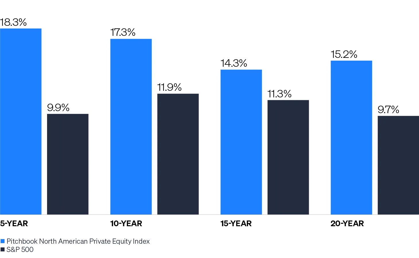 - Pitchbook North American Private Equity Index, as of December 31, 2023, latest data available.